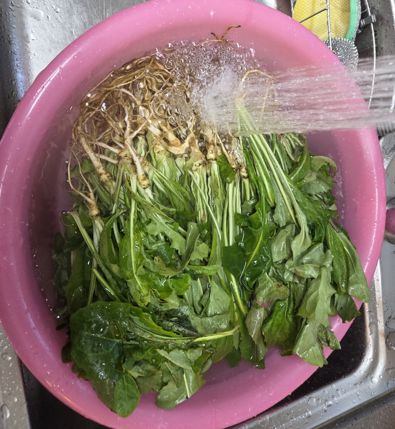 (흐르는 물에 몇 차례 흙을 다 벗겨내고)