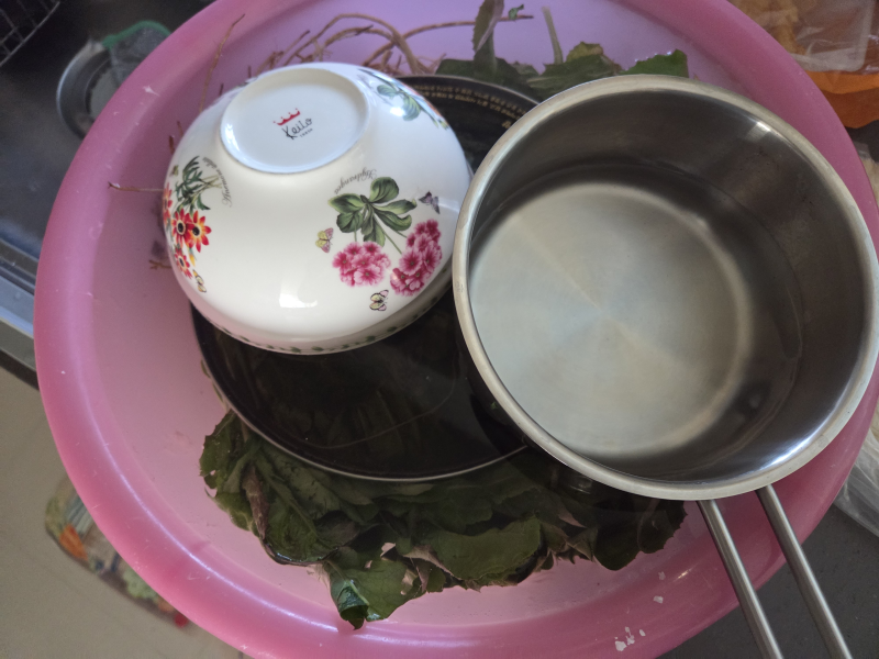 완전히 물에 담가야 하므로 무언가 꾹꾹 눌러 줍니다.
