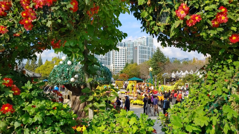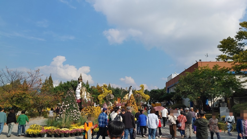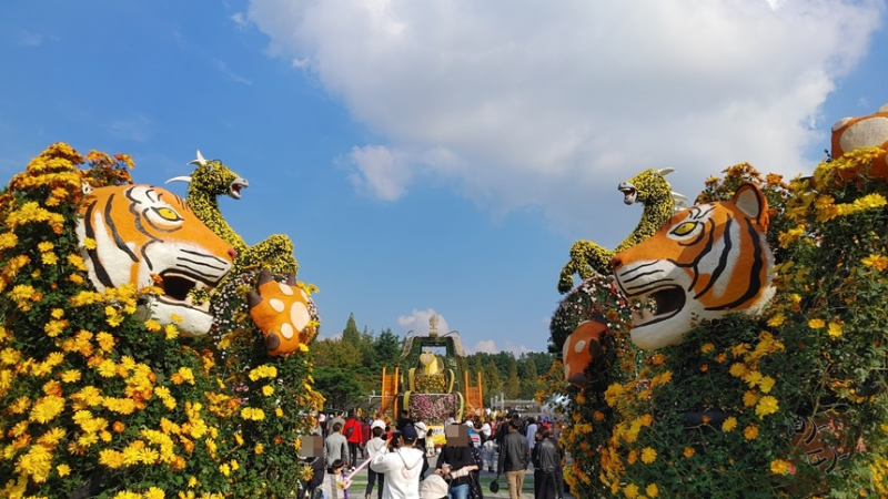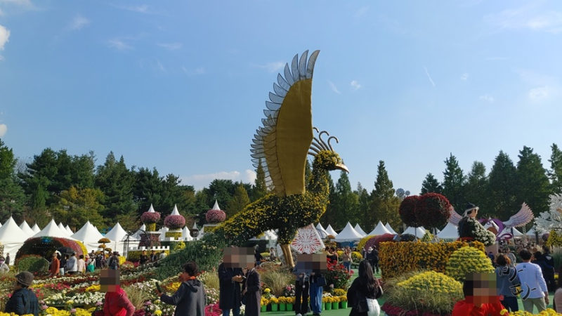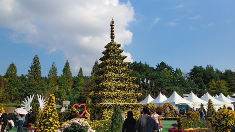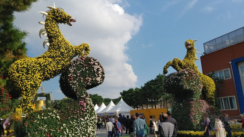 우와, 어마어마한 규모네요.., 국화탑 크기를 보니.. 기와지붕 위에도? 정말 국화 천만송이 보는 축제인가 봅니다.