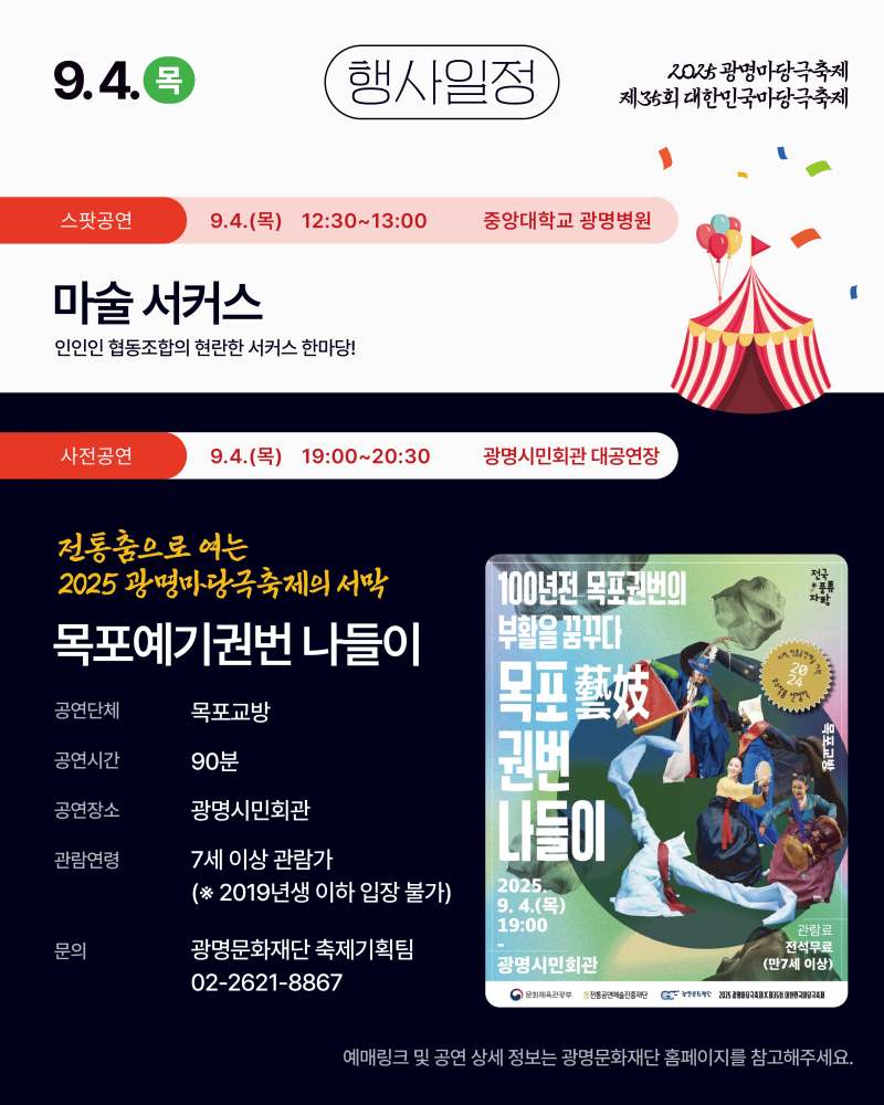태그광명 마당극 축제목포예기권번나들이광명농악 판굿단심줄밴드날다연희극극단상사화