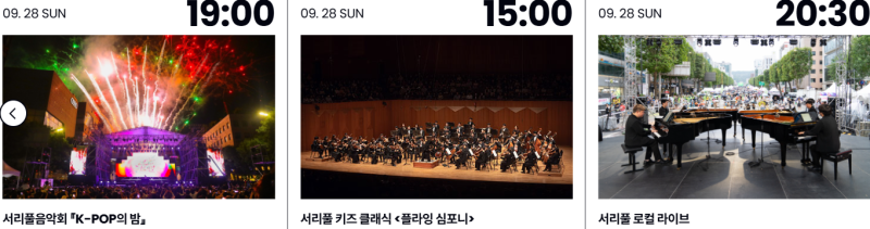 서리풀음악회 「클래식의 밤」, 서리풀음악회 「K-POP의 밤」, 지상최대스케치북, 서리풀 키즈 클래식 <플라잉 심포니>, 서리풀 재즈 나이트, 서리풀 로컬 라이브 등