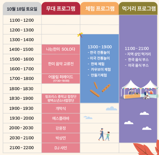 또한 올해는 한미 양국의 전통문화와 놀이 챌린지, 한미 만들기 등을 체험할 수 있는 다양한 프로그램들도 구성돼 한미 양국의 남녀노소, 가족 단위 방문객들의 발길을 사로잡을 예정이다.