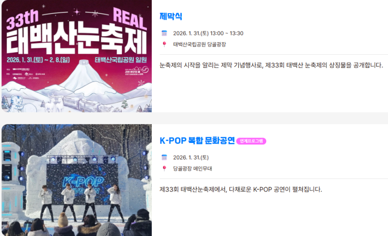 2026년 제33회 태백산 눈축제 개최 알림