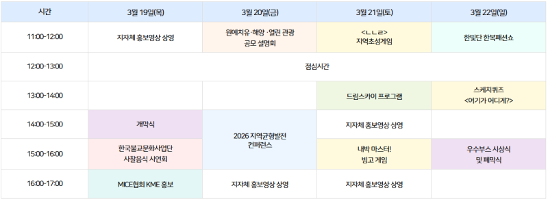 일 자 : 2026년 03월 19일(목)~03월 22일(일)