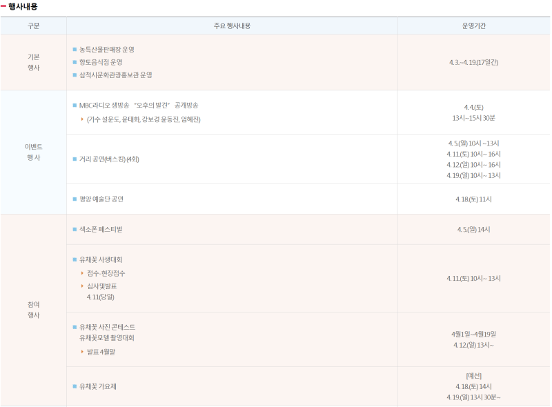 - 주최/주관: 삼척시 / 삼척맹방유채꽃축제추진위원