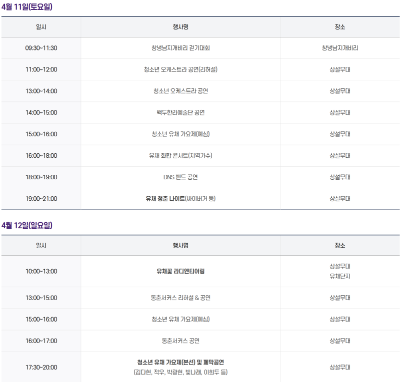 제21회 창녕낙동강유채축제 일정표