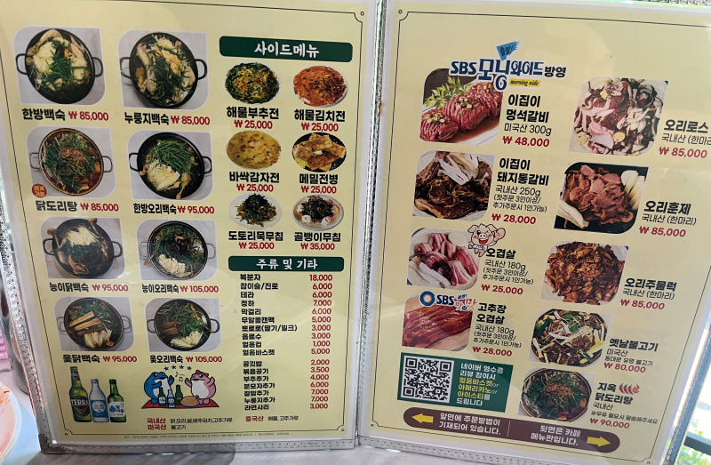 우리는 한방백숙 그리고 고추장오겹살을 시켜 먹었습니다.
