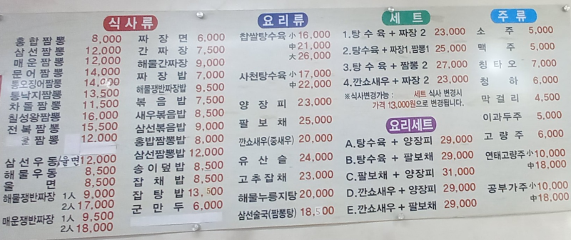 삼선해물짬뽕 그리고 통오징어짬뽕 먹었습니다 처음 왔으니까요~