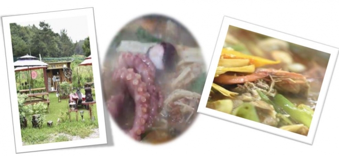 넓은 마당 솔밭집노래방 솔밭집놀이터 솔밭집산책길 무쇠솥도 보고..