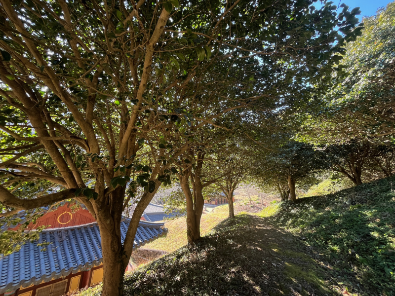 대웅전 주변 비자나무 와 차나무 숲이 국가산림문화자산으로 지정된 보호림이다. 지역명도 차(茶)와 길(道)을 딴 다도면이다.