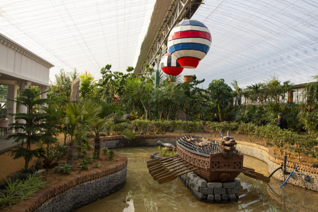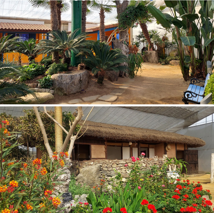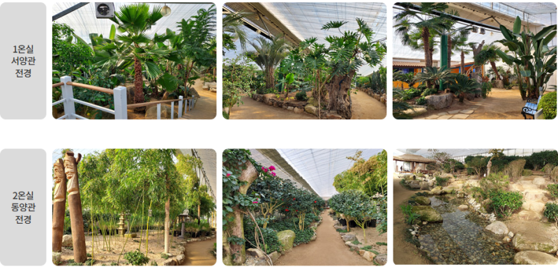 2온실(동양관) : 2,400㎡(72종 개체), 한국 남부 식물원, 연못, 초가집등