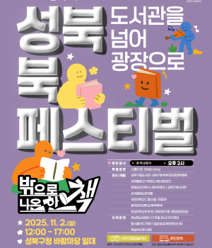 미리보기성북구(구청장이승로)는11월2일(일)‘밖으로나온한책:도서관을넘어광장으로’를주제로‘성북북페스티벌’을개최한다.이번행사는6년만…