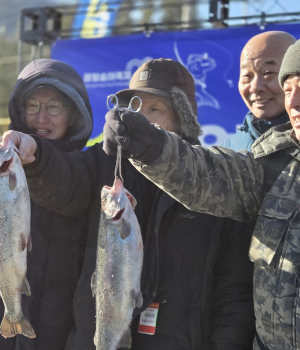 미리보기강원도대표겨울축제인평창송어축제20주년을맞아‘2026평창송어얼음낚시대회’가1월29일과30일양일간열렸다.첫날대회결과1위는1325그램…