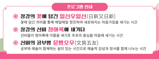 인기 있는 또 다른 프로그램으로 '창강의 선비 청아록에 새기다'도 나를 찾는 인성교육으로 자리매김하며 사전 예약 신청이 쇄도하고 있다.