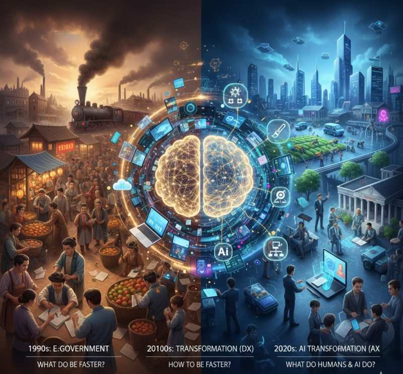 국가, 지방정부, 기업, 비영리단체 등 조직의 AX는 DX의 성과 위에서 가능하지만, 이전과는 근본적으로 다른 질문을 던진다. "어떻게 더 빠르게 할 것인가"가 아니라, "무엇을 인간이 하고 무엇을 AI에게 맡길 것인가"라는 질문이다.