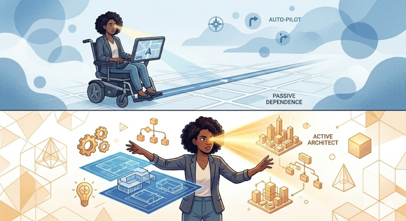 에이전트 AI가 우리 업무를 대신할수록 우리는 '내비게이션 역설(Navigation Paradox)'에 직면한다. 목적지만 입력하면 도착하는 방식에 길들여지면, 스스로 경로를 탐색하는 뇌의 근육은 퇴화하기 마련이다.